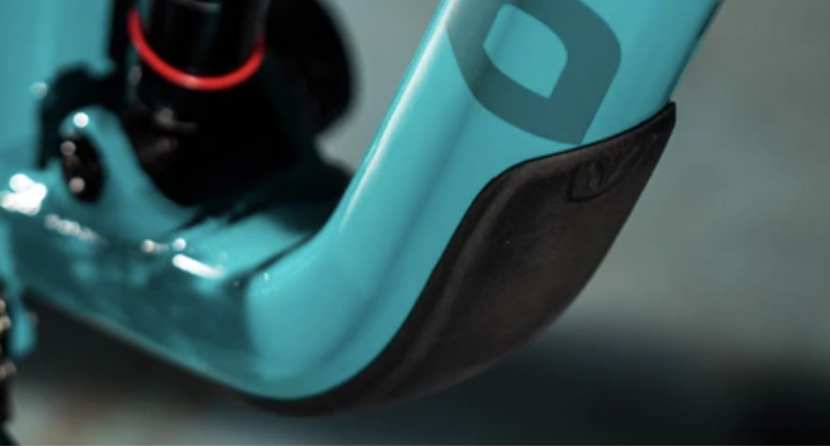 Protección integrada de poliuretano de alta densidad que resguarda zonas clave del cuadro contra impactos de piedras y desgaste por la cadena.