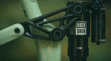 Configuración de shock trasero métrico con montaje trunnion que permite un diseño más compacto y eficiente dentro del cuadro.